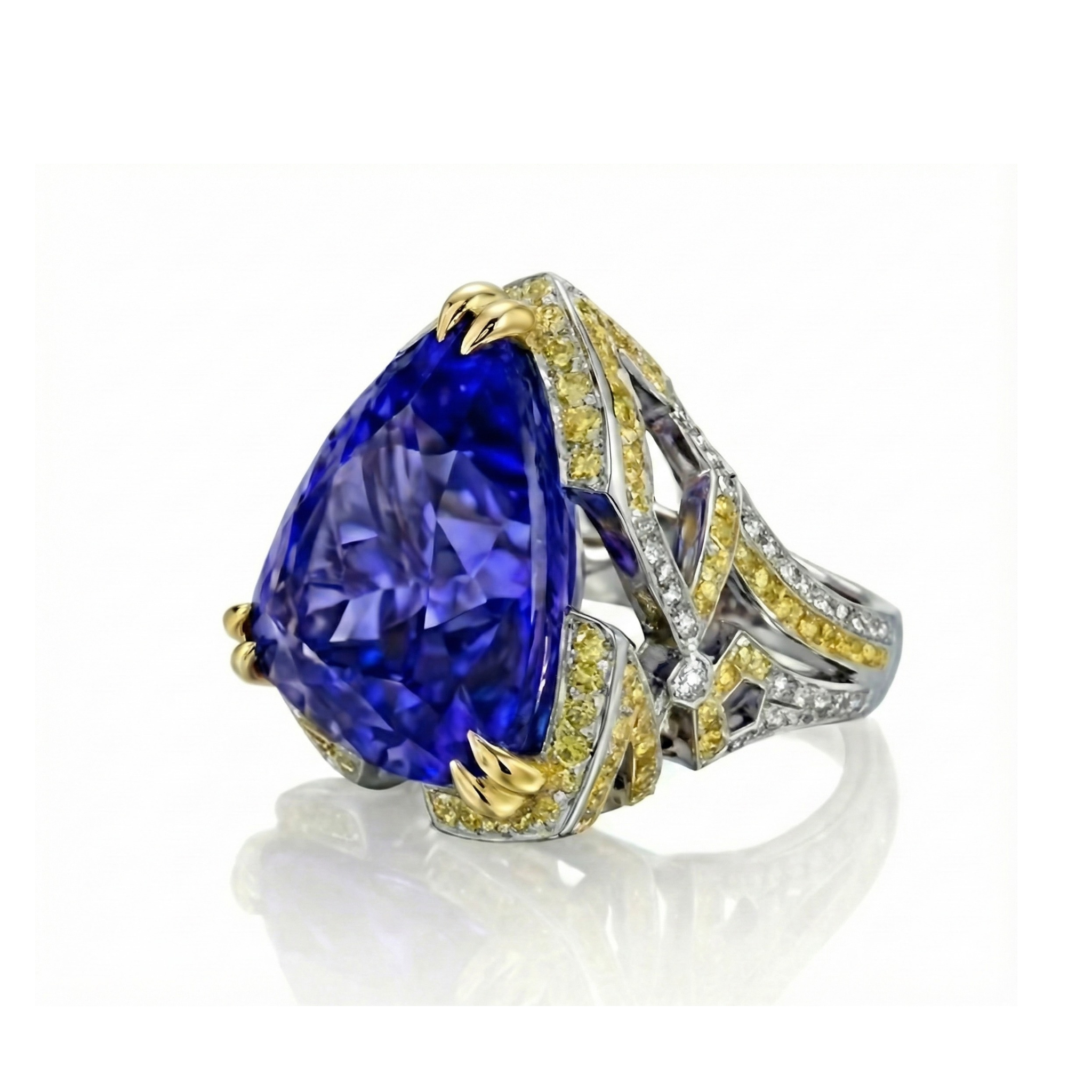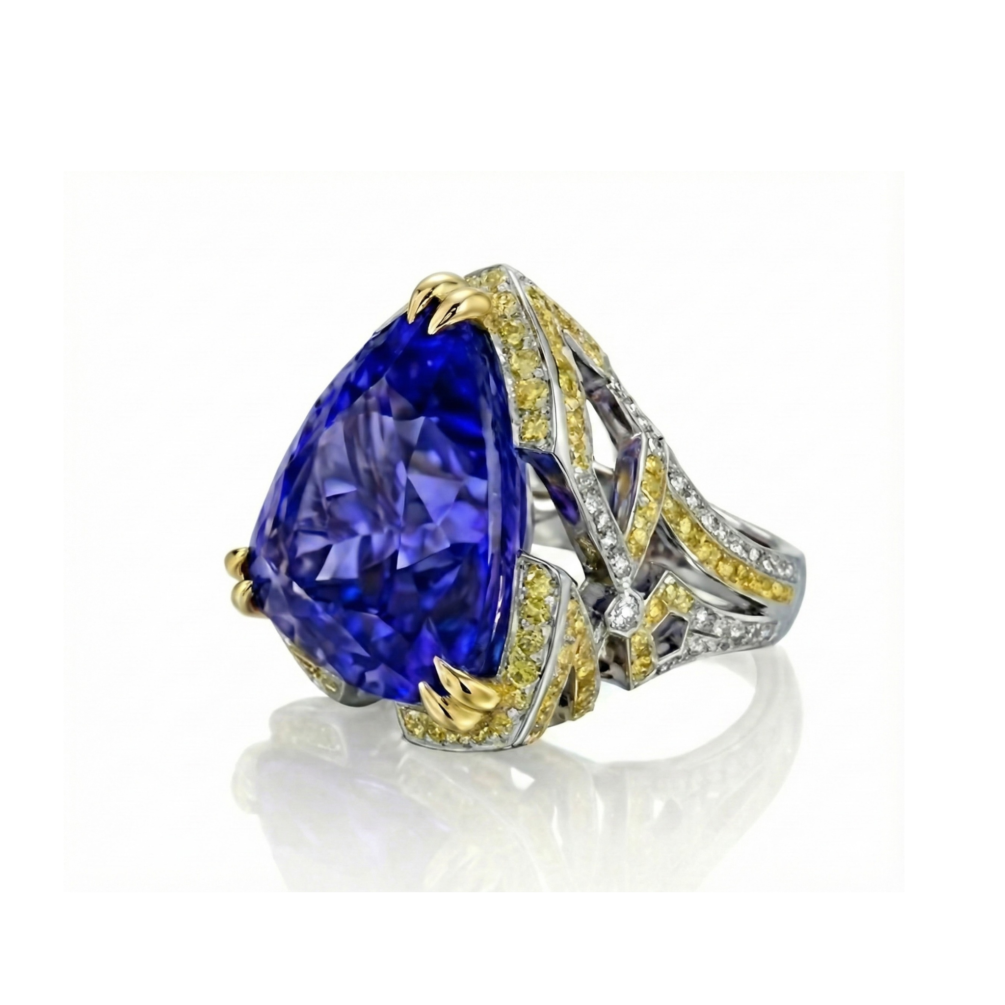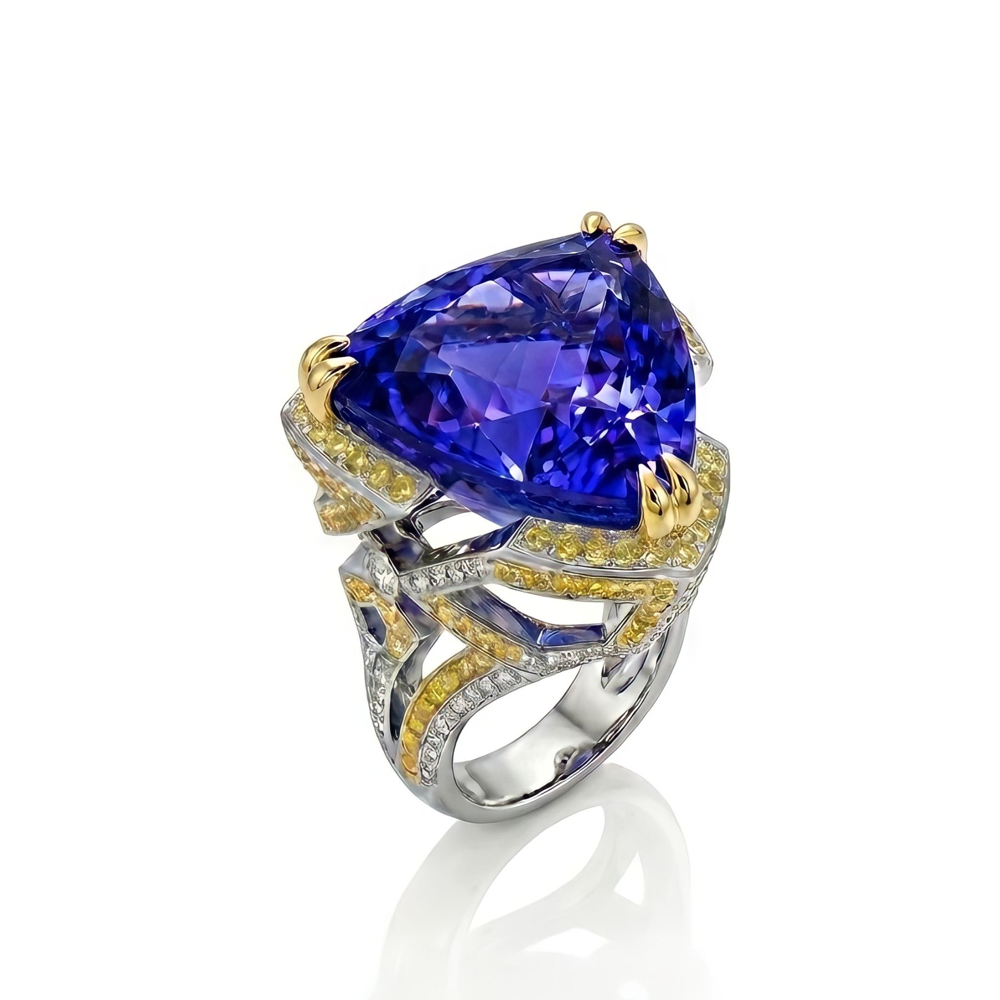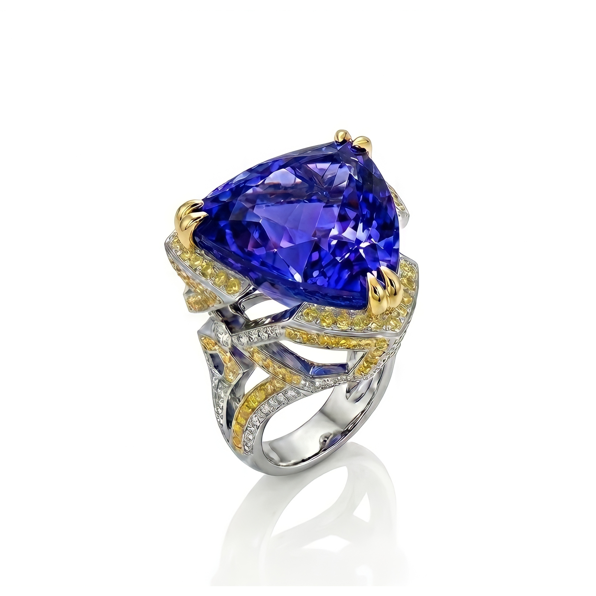 Dominated by a colossal 14-carat triangular tanzanite, the Magnum ring is the ultimate statement of scale and power.