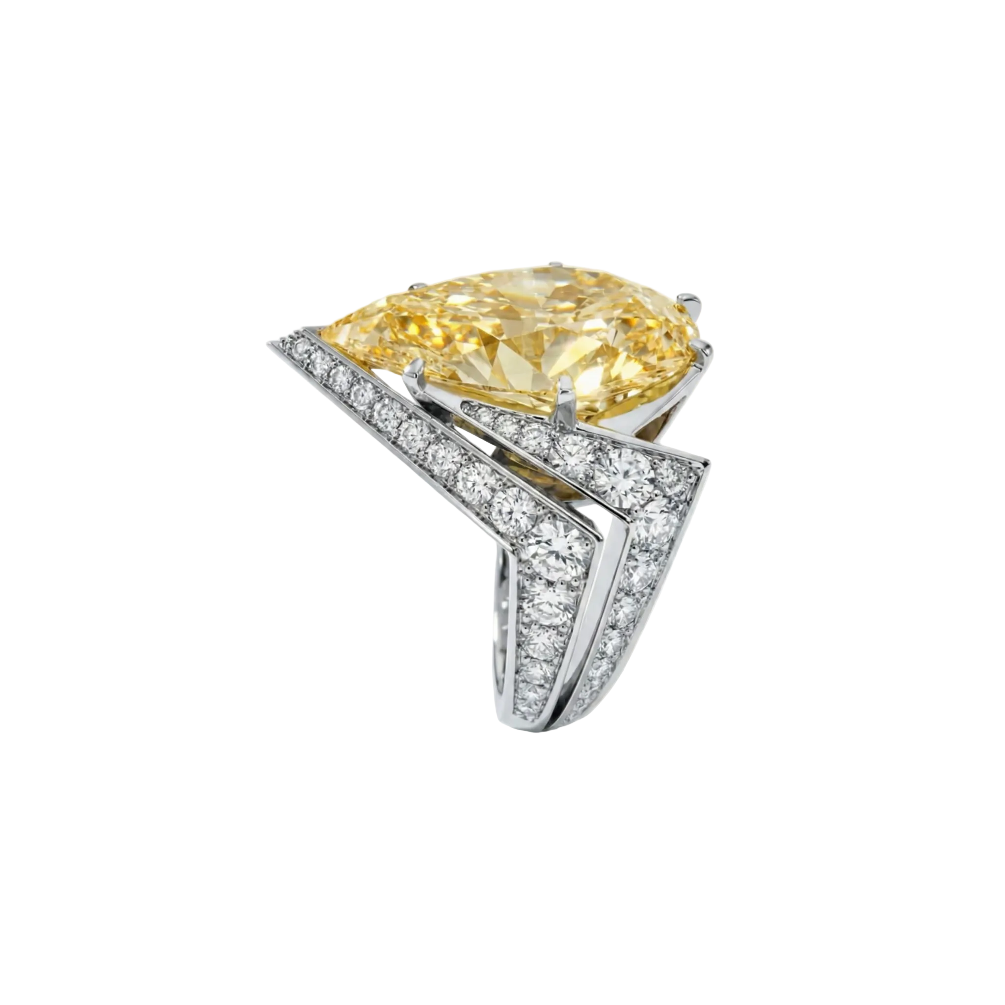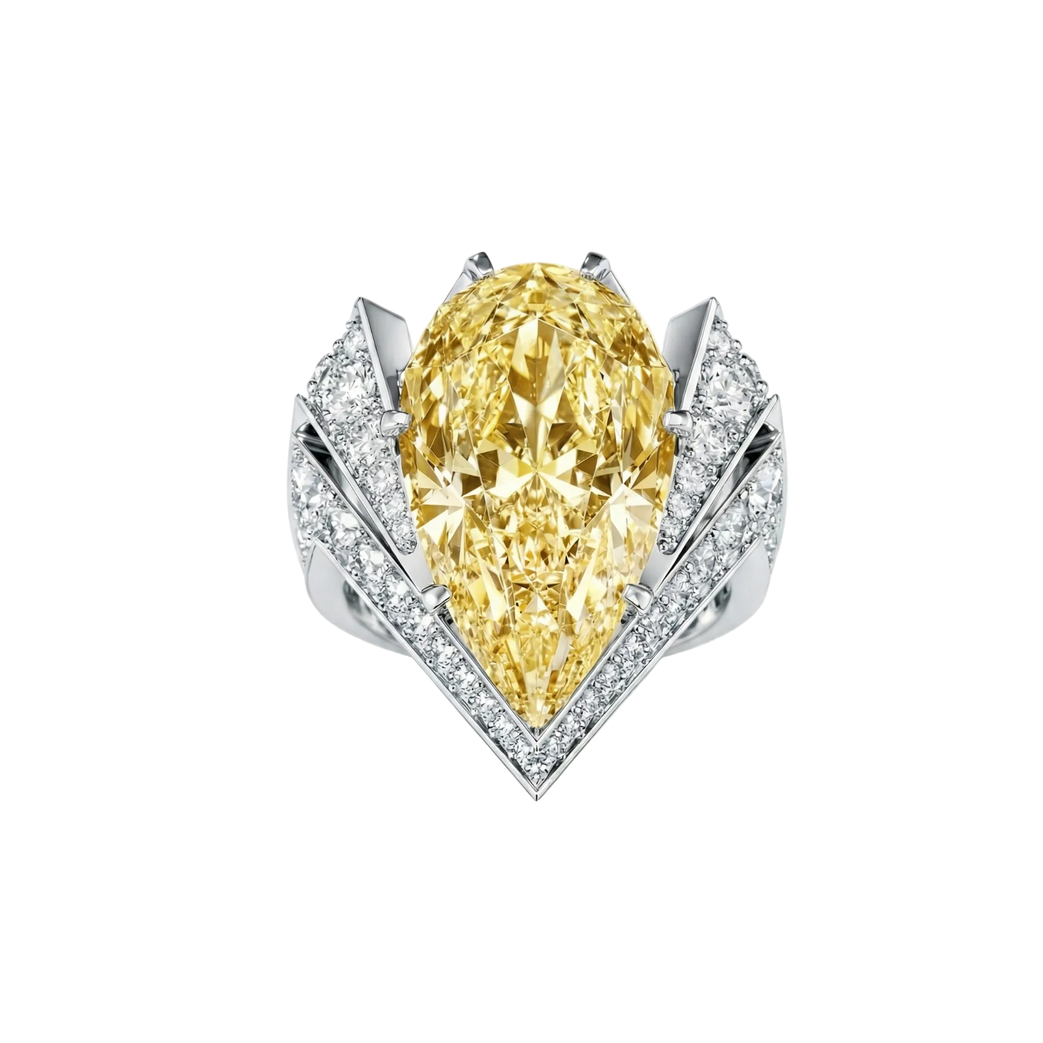This luxurious platinum ring features a magnificent yellow diamond that truly embodies the title "Yellow Empress."